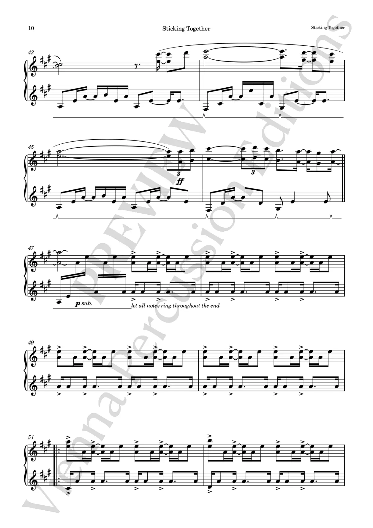 Sticking Together is a collection of three solo pieces for vibraphone with a predominantly calm and introspective character.